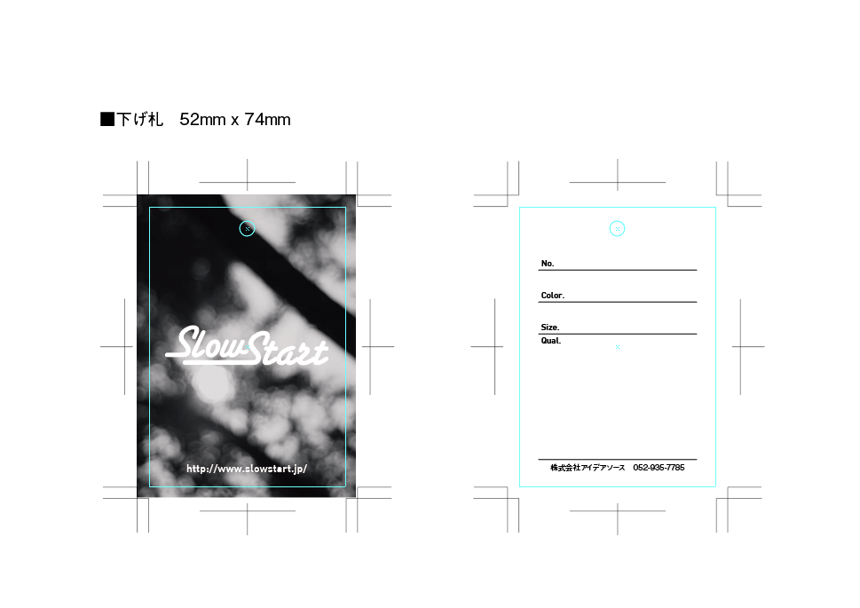 先日立ち上げた「Slow Start」。本業のお仕事の合間に少しづつ進めています。ひとまず第1弾のロゴTは、目処が立ったのでTシャツ屋さんに依頼をかけてお返事待ちとなりました。ということで、今日は下げ札を作ってみました。